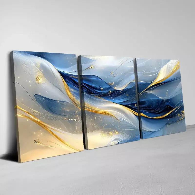 3pcs Elegant Abstract Blue Golden Lines Wall Art Set Canvas Framed 40x60cm - High Quality Print 100% Australian Made Wall Canvas Ready to Hang