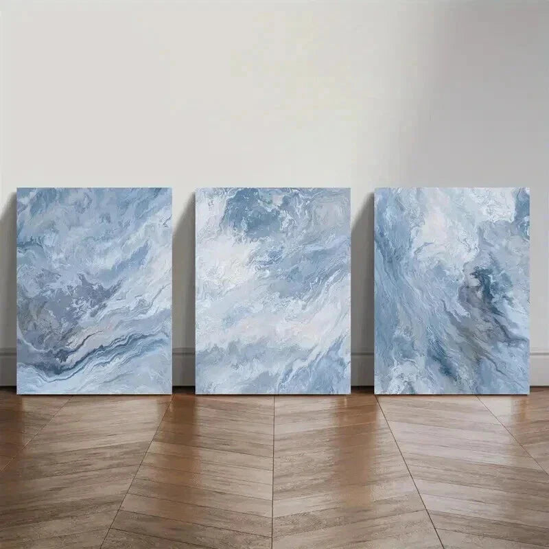 3pcs Elegant And Luxurious Blue Flowing Water Wall Art Set Canvas Framed 40x60cm - High Quality Print 100% Australian Made Wall Canvas Ready to Hang