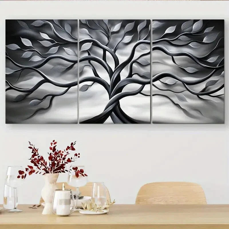 3pcs Elegant Black And White Twisting Tree Metal Print Ready to Hang Art