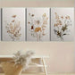 3pcs Elegant Botanical with Golden-Hued Flowers Metal Print Ready to Hang Art