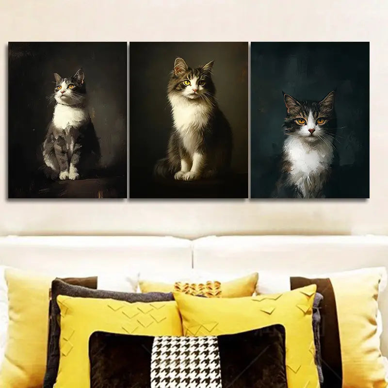 3pcs Elegant Cat Metal Print Ready to Hang Art