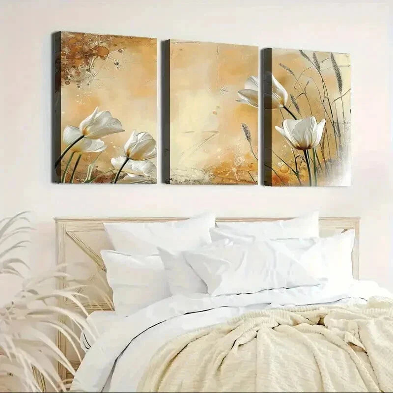 3pcs Elegant Floral White Tulip Paintings Wall Art Set Canvas Framed 40x60cm - High Quality Print 100% Australian Made Wall Canvas Ready to Hang
