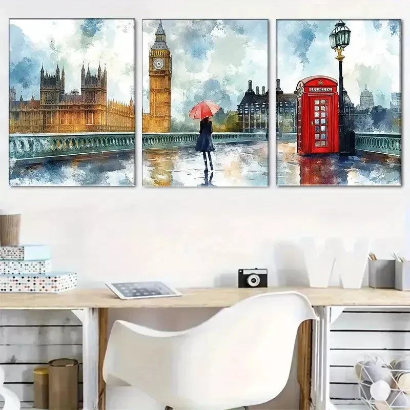 3pcs elegant London Landmarks watercolor Wall Art Set Canvas Framed 40x60cm - High Quality Print 100% Australian Made Wall Canvas Ready to Hang