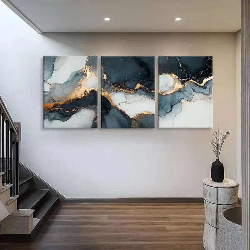 3pcs Elegant Marble Dark Blue and Golden Perfect Wall Art Set Canvas Framed 40x60cm - High Quality Print 100% Australian Made Wall Canvas Ready to Hang