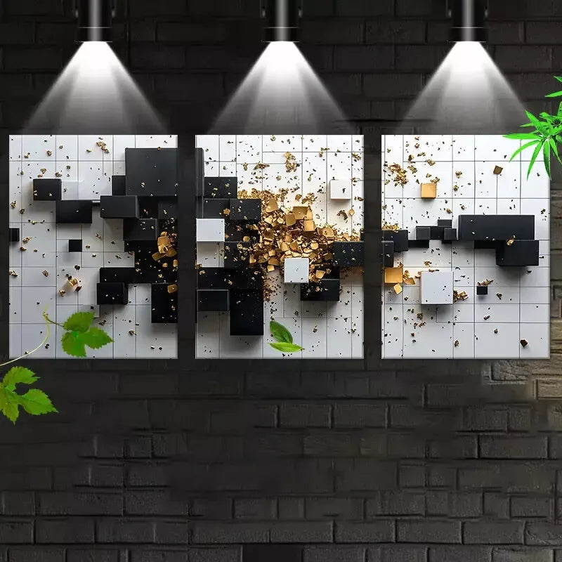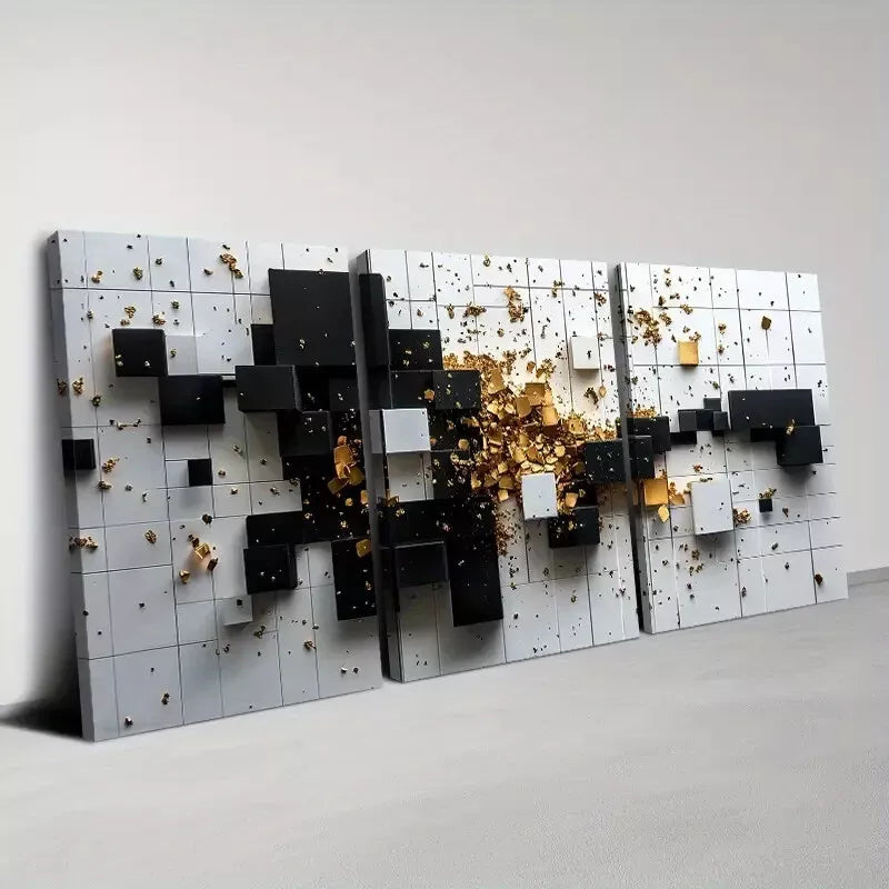 3pcs Elegant & Modern Abstract Square Designs Wall Art Set Canvas Framed 40x60cm - High Quality Print 100% Australian Made Wall Canvas Ready to Hang