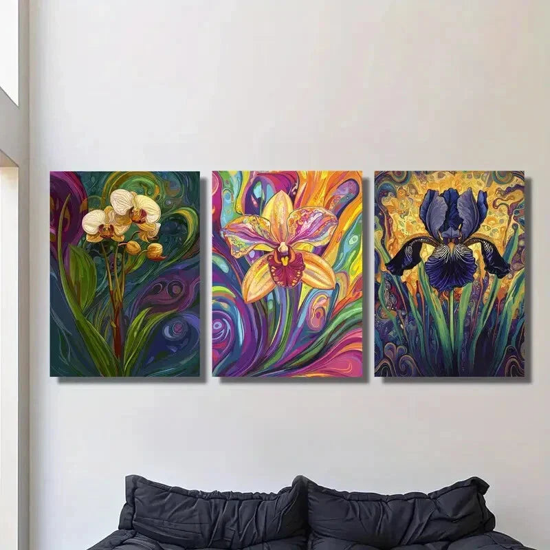 3pcs Elegant Orchids with Watercolor Effect Metal Print Ready to Hang Art