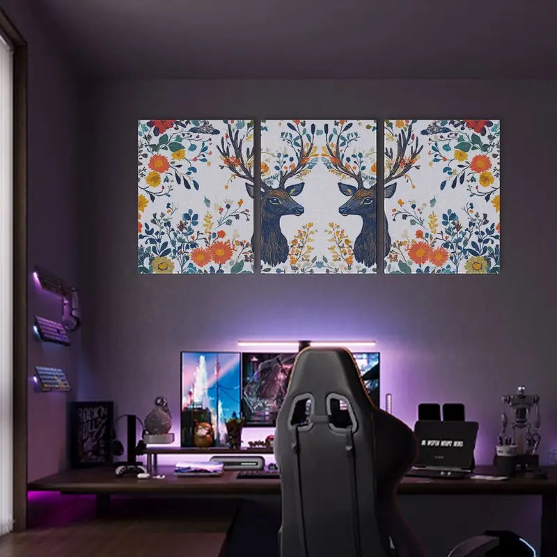 3pcs Elegant pattern featuring two majestic deer Metal Print Ready to Hang Art