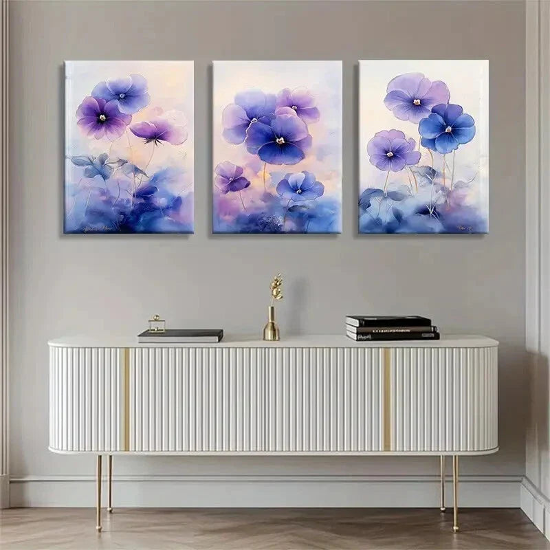 3pcs Elegant Purple Floral Dreamy Metal Print Ready to Hang Art
