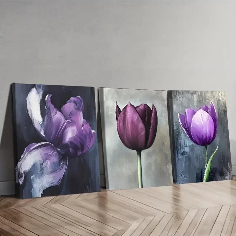 3pcs Elegant Purple Tulip Waterproof Wall Art Set Canvas Framed 40x60cm - High Quality Print 100% Australian Made Wall Canvas Ready to Hang