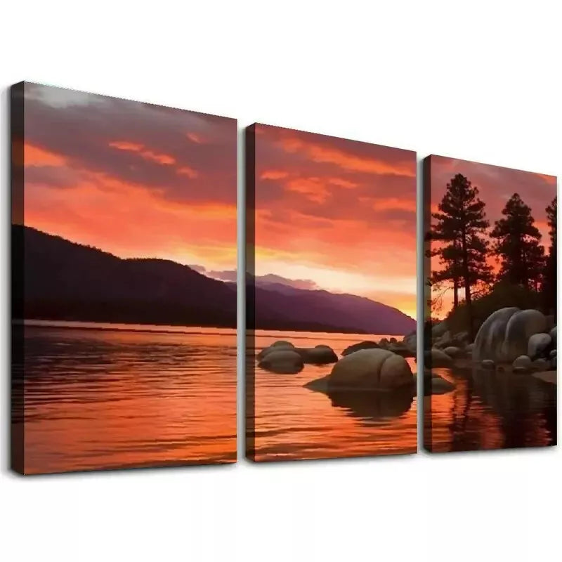 3pcs Elegant Sand Harbor Sunset Orton Wall Art Set Canvas Framed 40x60cm - High Quality Print 100% Australian Made Wall Canvas Ready to Hang