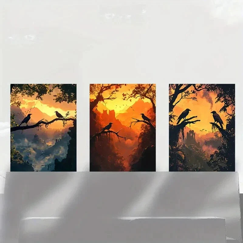 3pcs Elegant Sunset Scenery Silhouette Metal Print Ready to Hang Art
