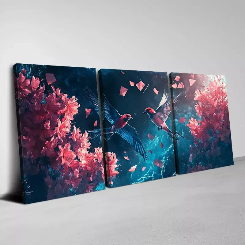 3pcs Elegant Swallows with Modern Pink Florals Wall Art Set Canvas Framed 40x60cm - High Quality Print 100% Australian Made Wall Canvas Ready to Hang