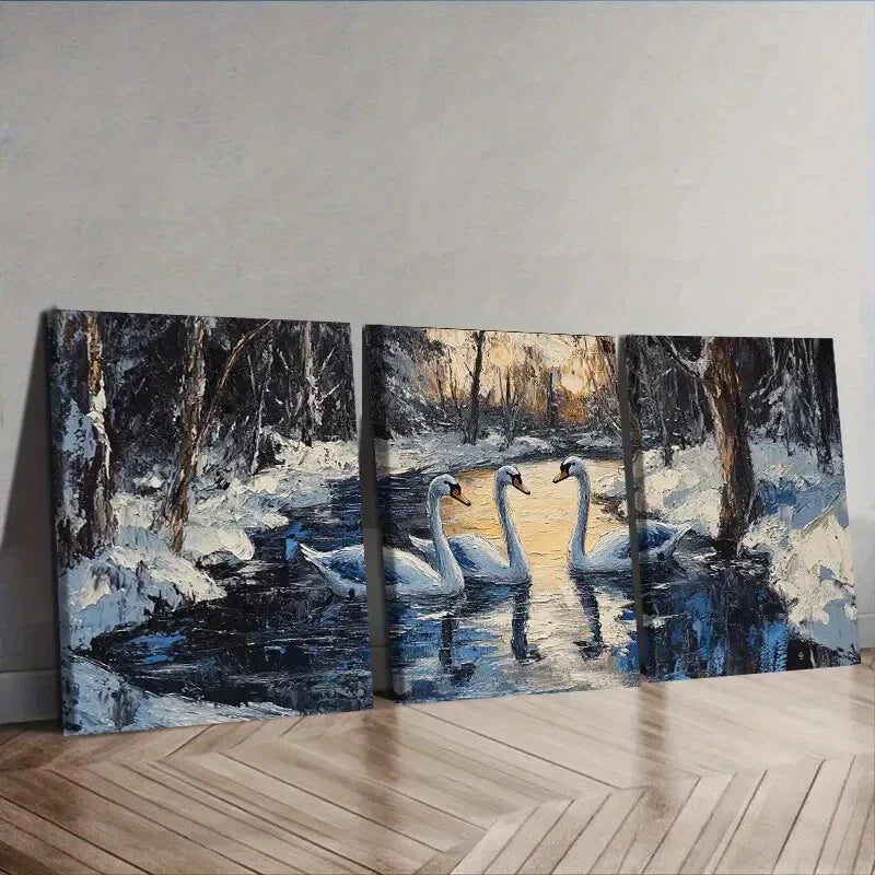 3pcs Elegant Swan Lake Scene Wall Art Set Canvas Framed 40x60cm - High Quality Print 100% Australian Made Wall Canvas Ready to Hang