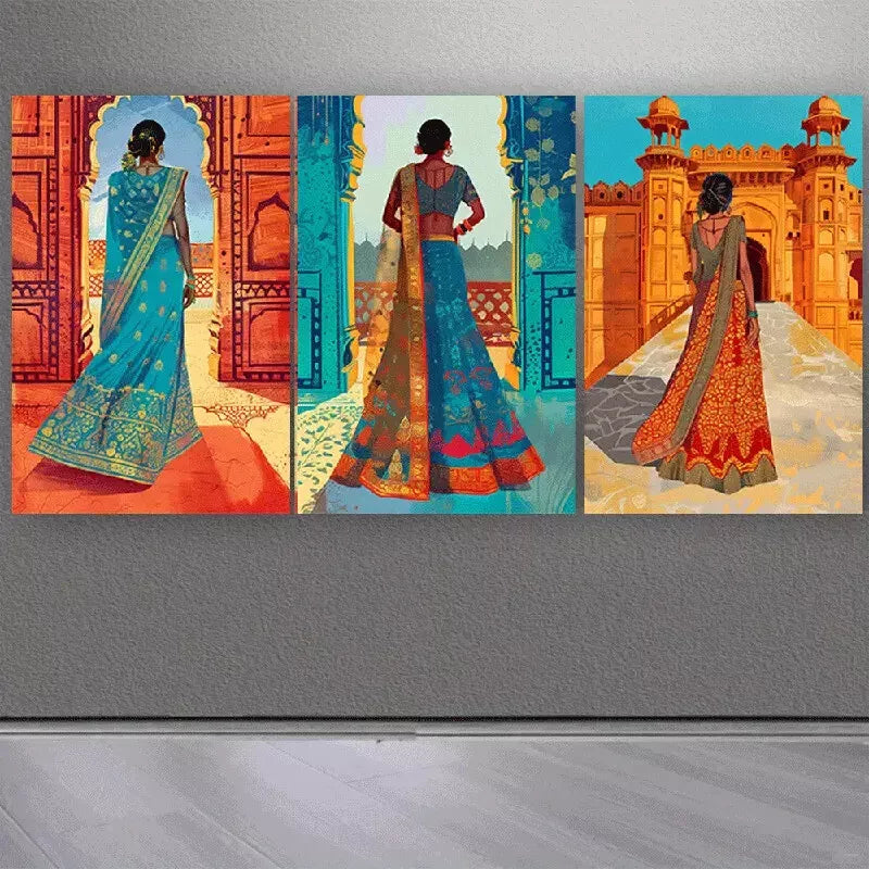 3pcs Elegant Traditional Women in Cultural Attire Canvas Framed 40x60cm - High Quality Print 100% Australian Made Wall Canvas Ready to Hang