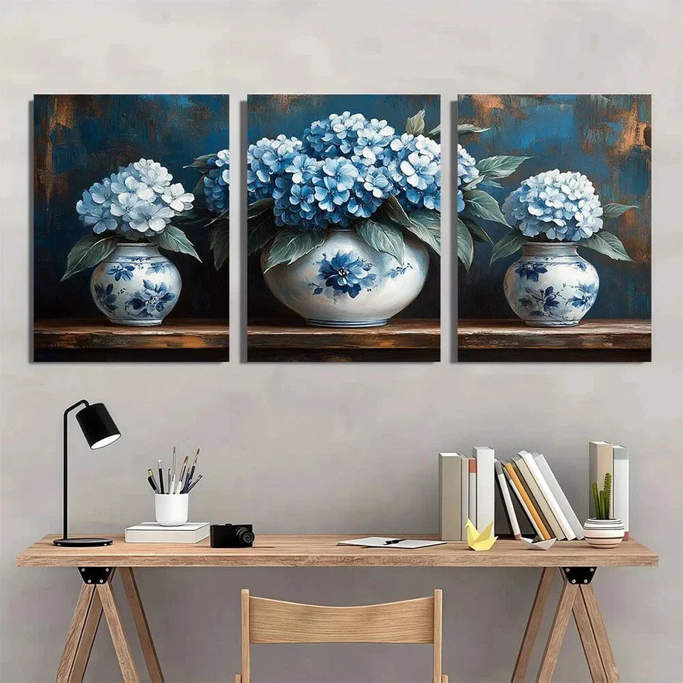 3pcs Elegant Vintage Blue & White Floral Metal Print Ready to Hang Art