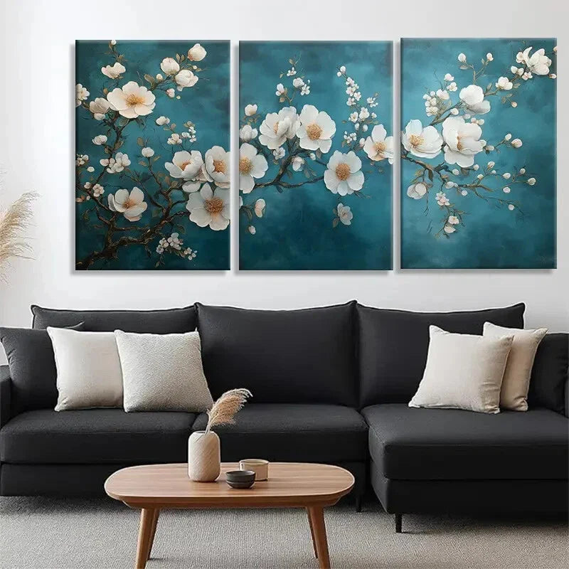 3pcs Elegant White Blossom Branches Perfect Wall Art Set Canvas Framed 40x60cm - High Quality Print 100% Australian Made Wall Canvas Ready to Hang