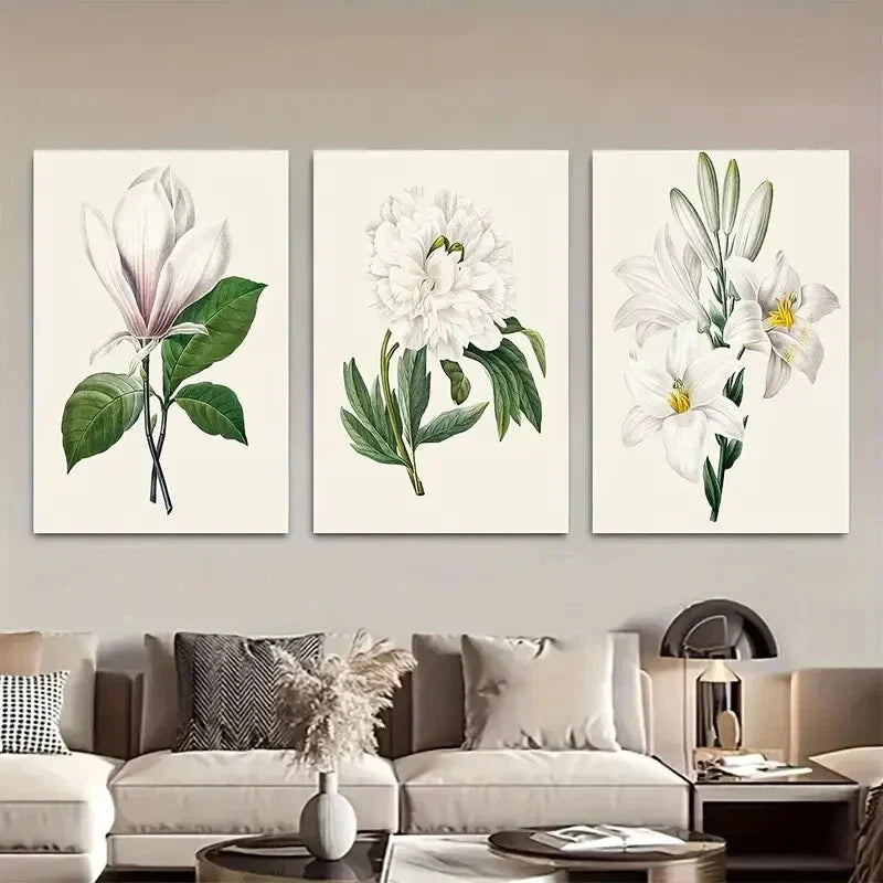 3pcs Elegant White Flower Botanical Print Metal Print Ready to Hang Art