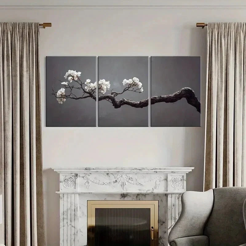 3pcs Elegant White Flowers Twisted Wood Texture Metal Print Ready to Hang Art