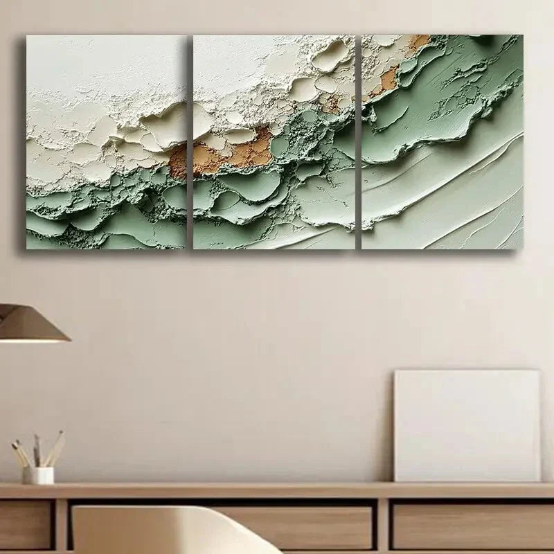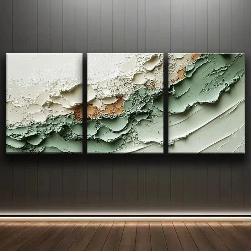 3pcs Elegant White & Green Design Metal Print Ready to Hang Art