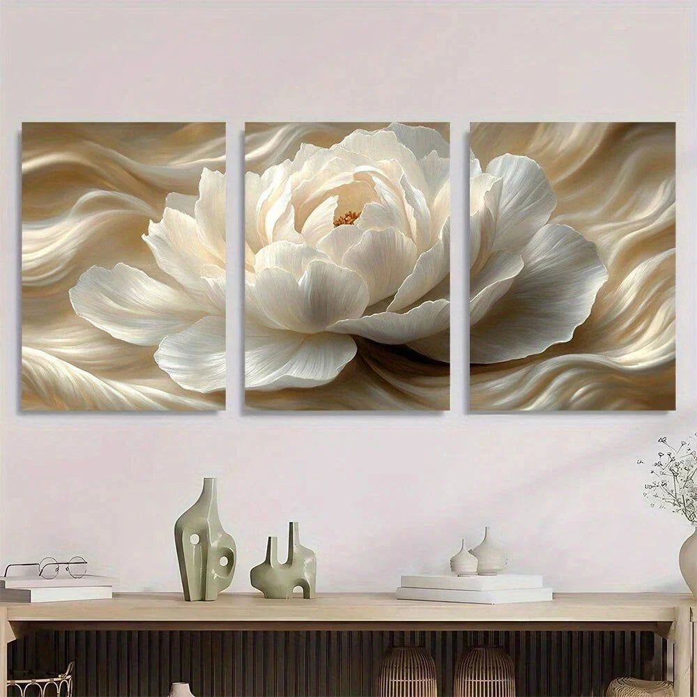 3pcs Elegant White Peony Floral Metal Print Ready to Hang Art