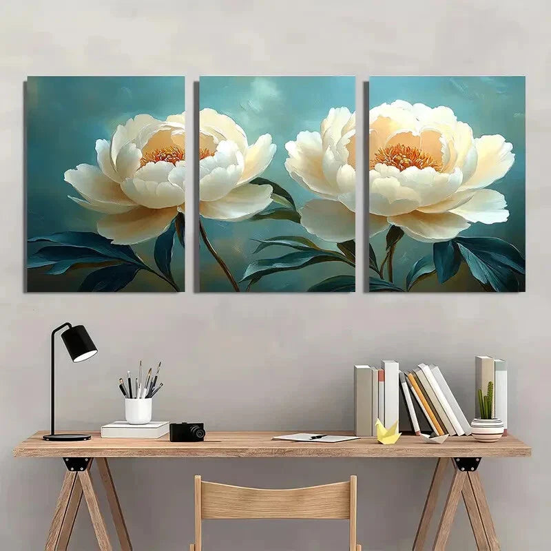 3pcs Elegant White Peony Light & Natural Metal Print Ready to Hang Art