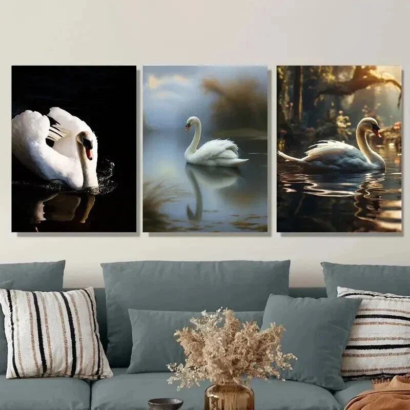 3pcs Elegant White Swans in Serene Water Scenes Wall Art Set Canvas Framed 40x60cm - High Quality Print 100% Australian Made Wall Canvas Ready to Hang