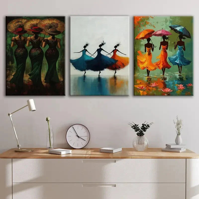 3pcs Elegant Women Orange Blue Vibrant Abstract Wall Art Set Canvas Framed 40x60cm - High Quality Print 100% Australian Made Wall Canvas Ready to Hang