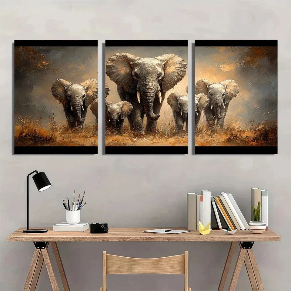3pcs Elephant Family Wildlife Animal Themed Metal Print Ready to Hang Art