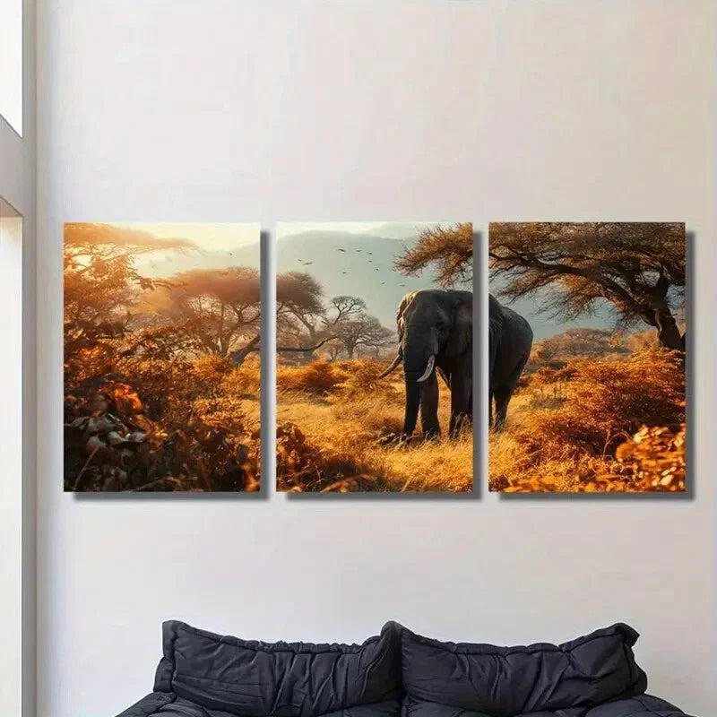 3pcs Elephant Forest Vibrant Jungle Scene Metal Print Ready to Hang Art