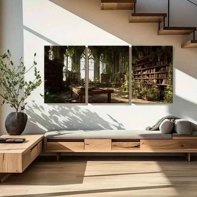 3pcs Enchanted Gothic Architecture Bookshelves Metal Print Ready to Hang Art