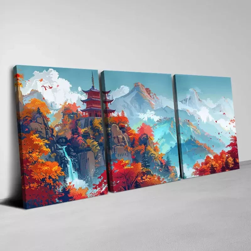 3pcs Enchanting and Serene Lakeside Town Wall Art Set Canvas Framed 40x60cm - High Quality Print 100% Australian Made Wall Canvas Ready to Hang