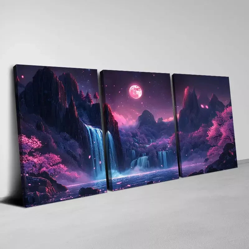 3pcs Enchanting Cherry Blossoms And Waterfalls Wall Art Set Canvas Framed 40x60cm - High Quality Print 100% Australian Made Wall Canvas Ready to Hang