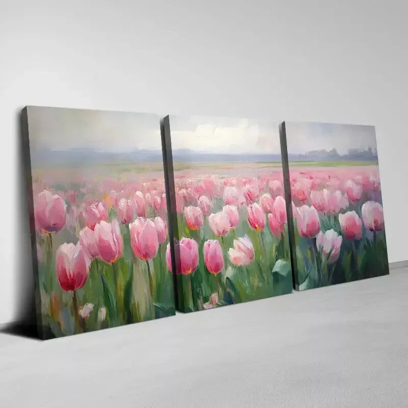 3pcs Enchanting Rare Tulips Field with Sky View Wall Art Set Canvas Framed 40x60cm - High Quality Print 100% Australian Made Wall Canvas Ready to Hang