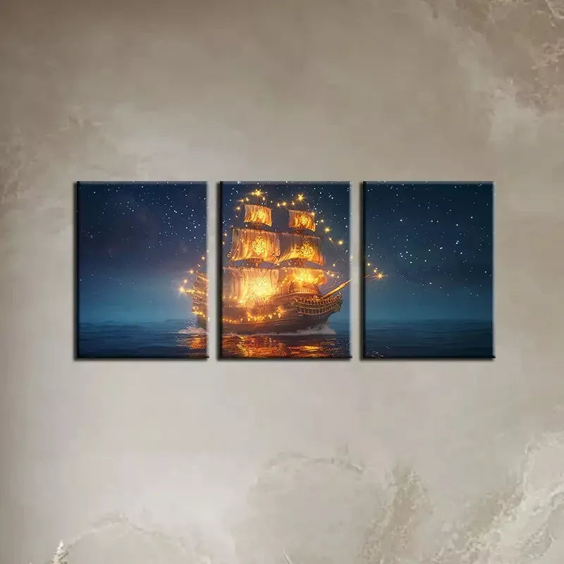 3pcs Enchanting Sailboat Under the Stars Wall Art Set Canvas Framed 40x60cm - High Quality Print 100% Australian Made Wall Canvas Ready to Hang