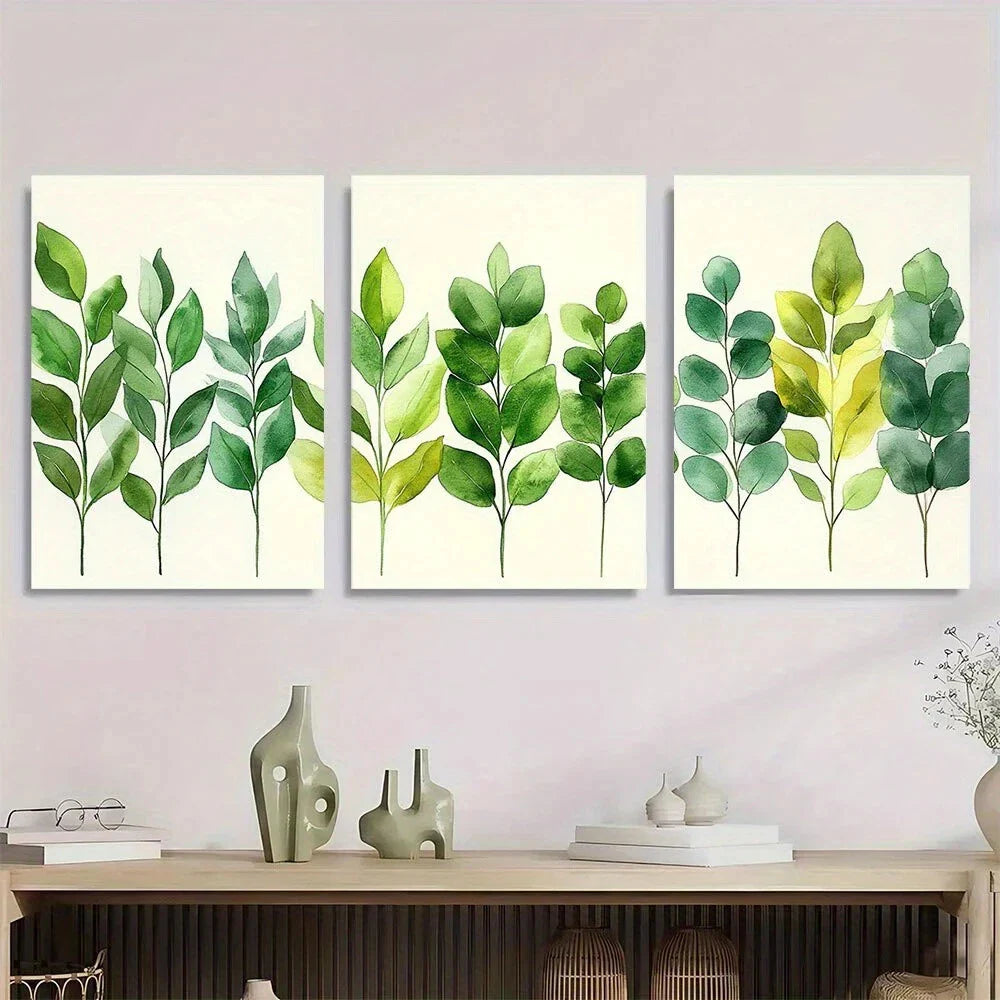 3pcs Eucalyptus and Green Botanical Metal Print Ready to Hang Art