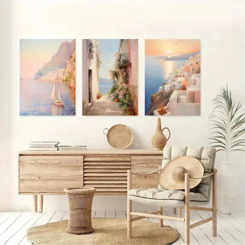 3pcs European Coastal Creative Print Pink Pastel Metal Print Ready to Hang Art