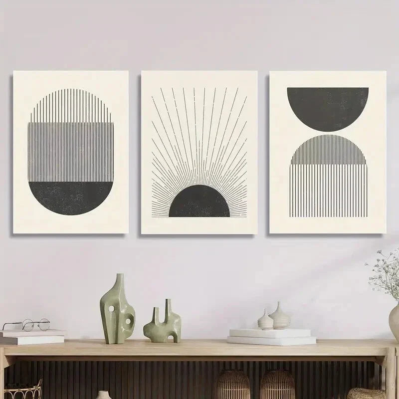 3pcs european retro black and white lines abstract Metal Print Ready to Hang Art
