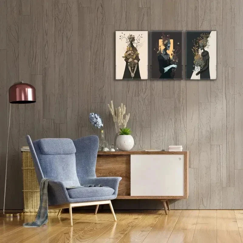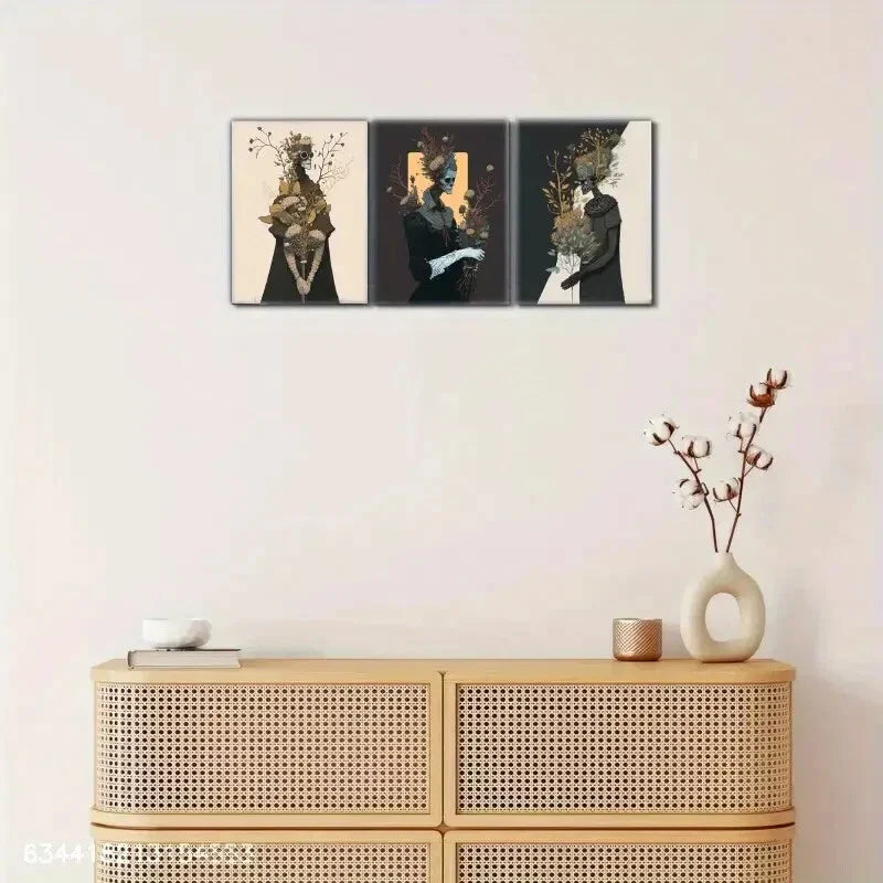 3pcs Evil Character Skull Skeleton with Floral Metal Print Ready to Hang Art