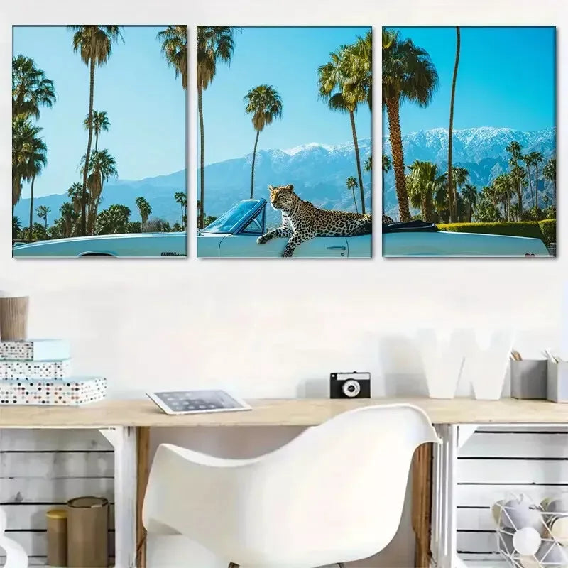 3pcs Exotic Leopard in Paradise Wrapped Wall Art Set Canvas Framed 40x60cm - High Quality Print 100% Australian Made Wall Canvas Ready to Hang
