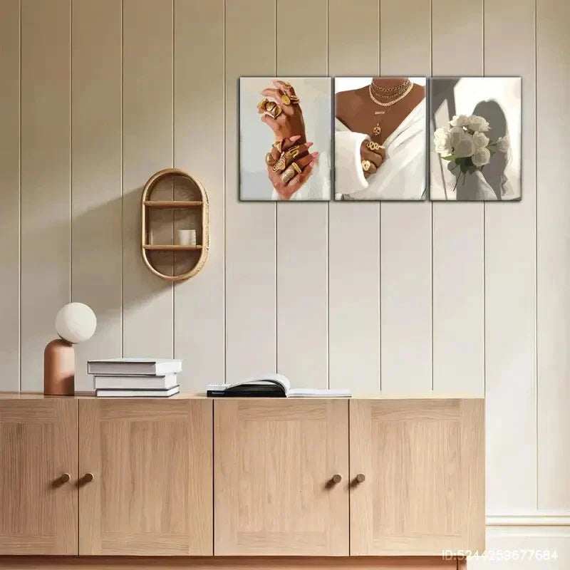 3pcs Expression White Bouquet Female Portrait Metal Print Ready to Hang Art