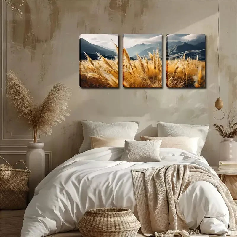 3pcs Exquisite Design, Grass Below The Hill Wall Art Set Canvas Framed 40x60cm - High Quality Print 100% Australian Made Wall Canvas Ready to Hang