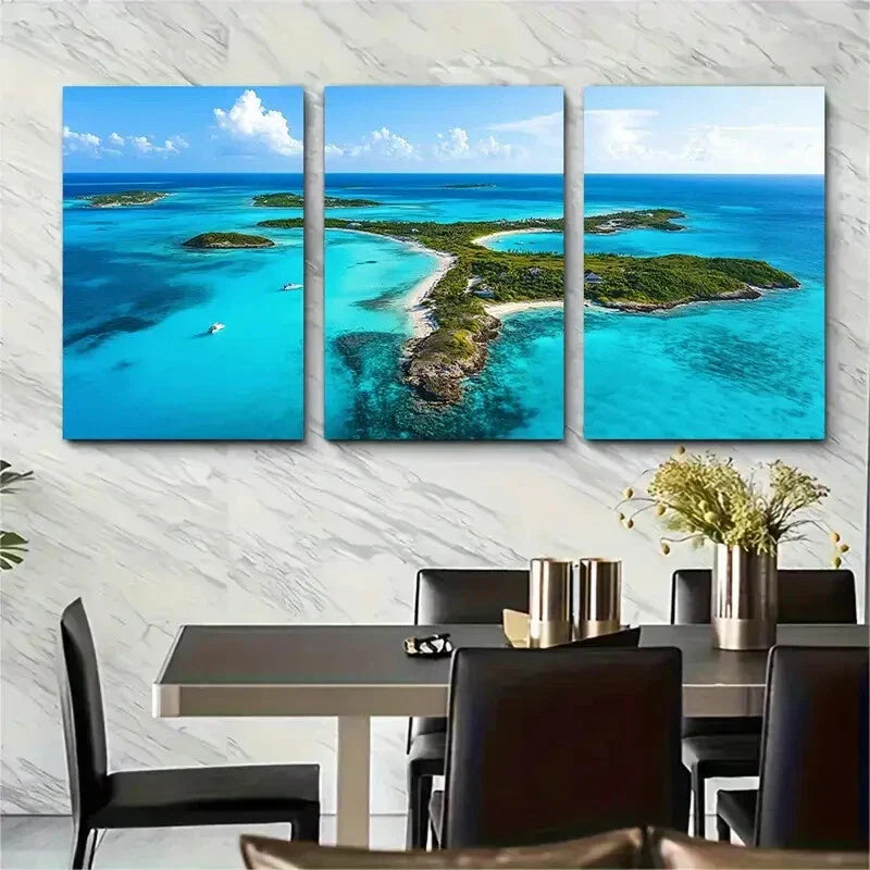 3pcs Exuma Caribbean Tropical Beach Scene Metal Print Ready to Hang Art