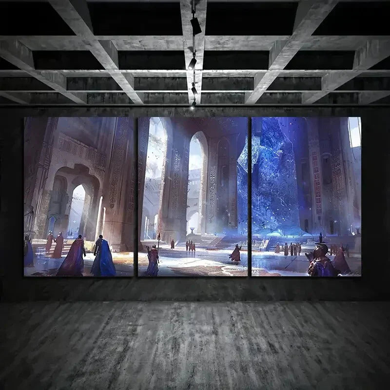 3pcs Fantasy Ancient Hall High Pillar Arch Metal Print Ready to Hang Art