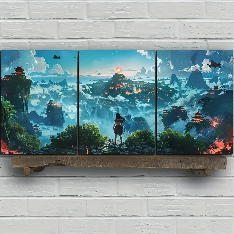 3pcs Fantasy Jungle Valley Green Leaves Metal Print Ready to Hang Art