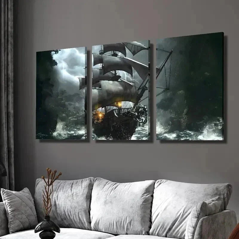 3pcs Fantasy Pirate Ship in Storm Theme Wall Art Set Canvas Framed 40x60cm - High Quality Print 100% Australian Made Wall Canvas Ready to Hang