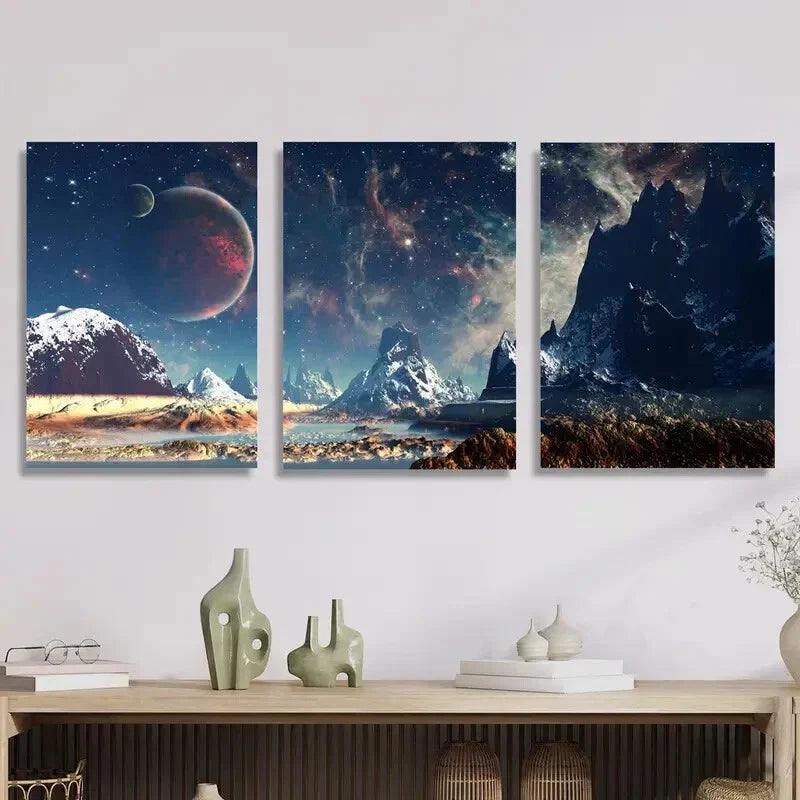 3pcs Fantasy Sci-Fi Landscape, Metal Print Ready to Hang Art