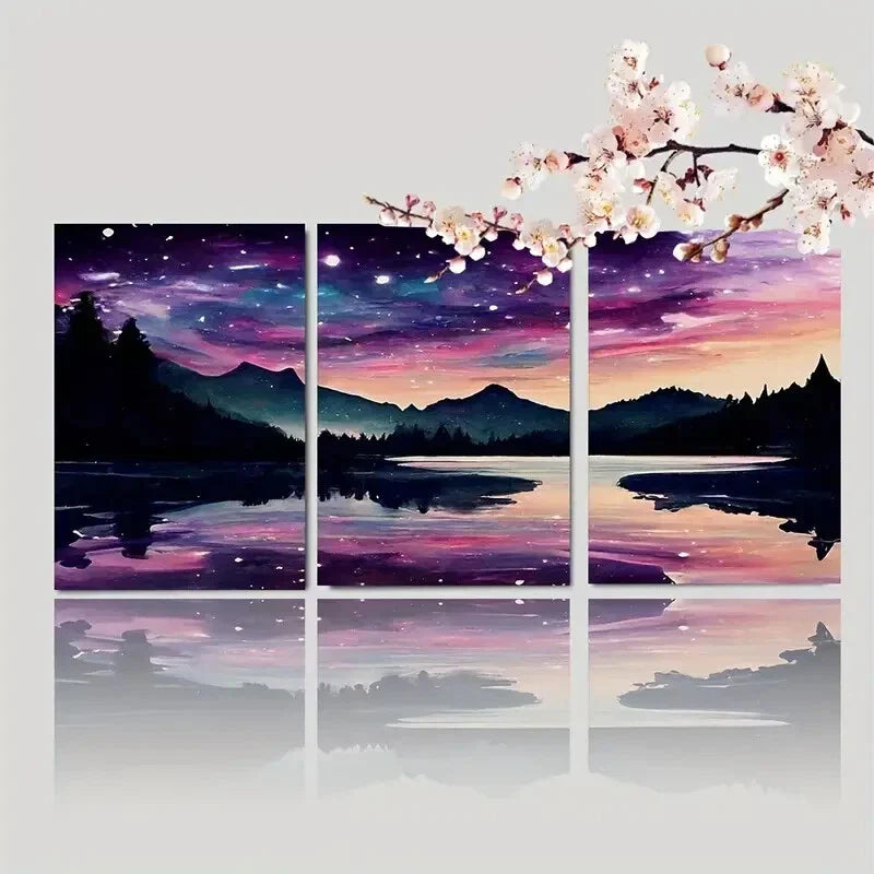 3pcs Fantasy Starry Night Magical Forest Metal Print Ready to Hang Art