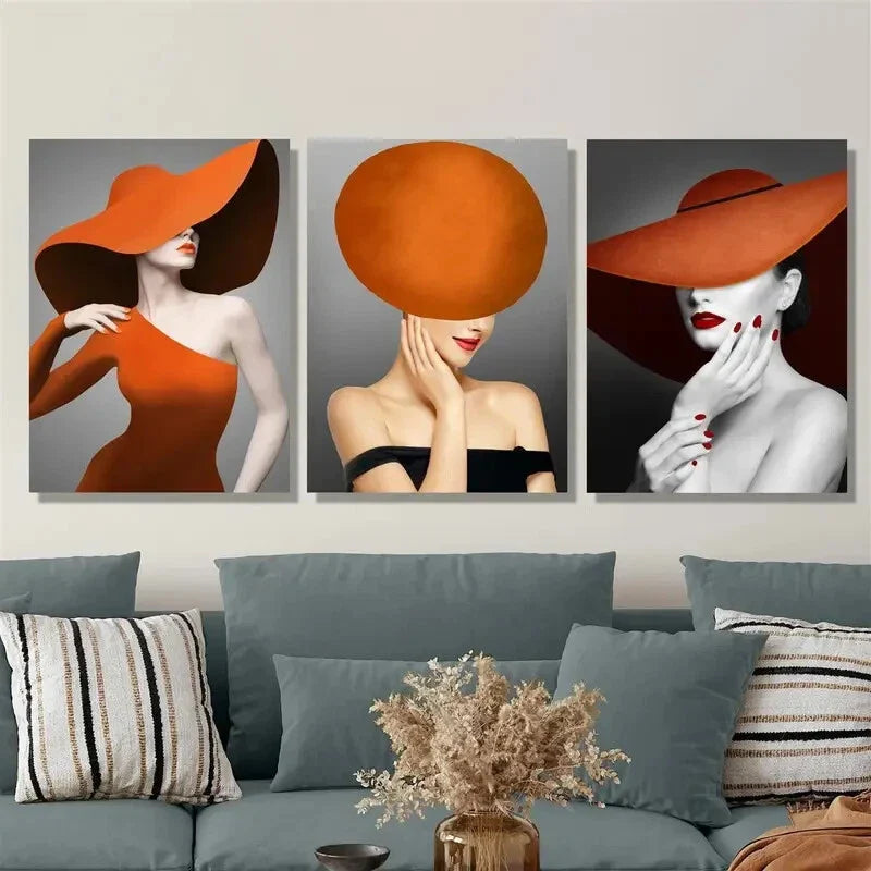 3pcs fashionable female hanging painting Metal Print Ready to Hang Art