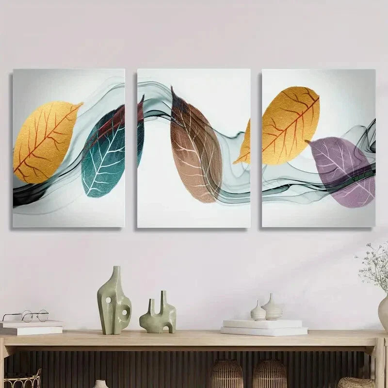 3pcs ,Fashionable Golden Leaves Metal Print Ready to Hang Art