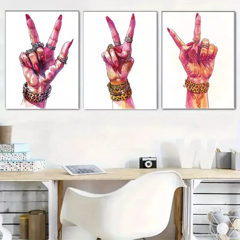 3pcs Fashionable Hand Gesture Triptych Wall Art Set Canvas Framed 40x60cm - High Quality Print 100% Australian Made Wall Canvas Ready to Hang